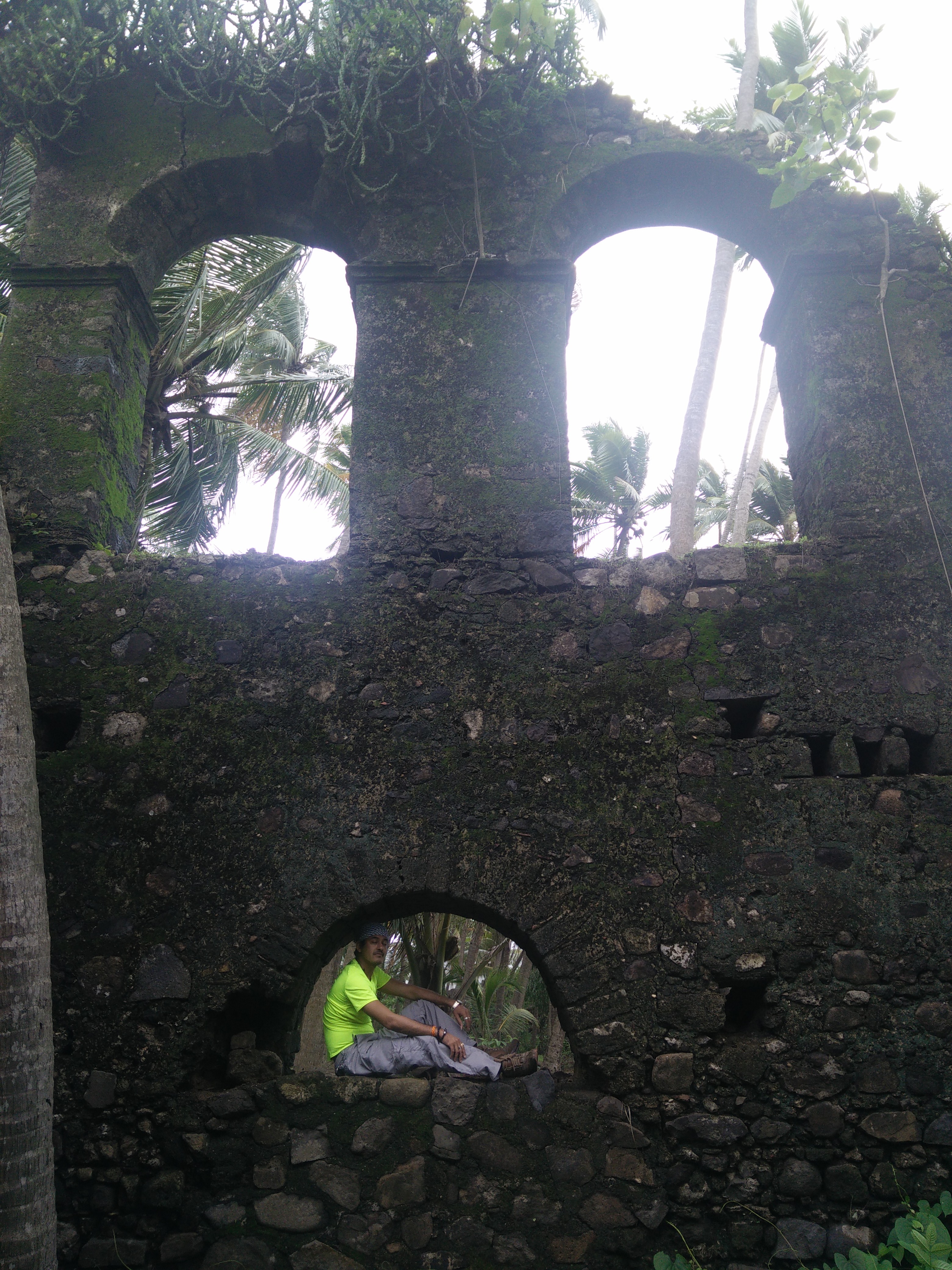 Our first destination is the beautiful desolate ruins of fort- Revdanda. Its an abandoned old skeletal ruin of a once high and mighty fort and a chapel too; as with most places in India sadly in neglected state of affairs. Why is it that we only want to keep creating new and neglect our old pristine or ruined past, however it maybe; it can always be preserved in remembrance? We roam around its precincts, and then sneak into the magnificent clean and clear beach adjoining it, which is the most fun part. Having panaromic views from the beach, having the cool misty air on our faces, solace and peace are to be found on many such pristine Maharashtra beaches. Its high tide time or else as in with my previous rides, where we walked for long miles with Kailash,Rajani,Rohit, and no other souls on there; climbed the fort walls for fun; and just sat and pondered within ourselves:) but for today we didn’t want to get wet in its waters, and hence we just hang by its shore’s on its huge boulders. Chutzpah sets into us again:) and the man of the moment is whom I love to address as ‘mukhyamantri'(cm) devendra; another old enthusiastic rider traveller:) He is brave enough to entertain us all with all his elements at his disposal:)